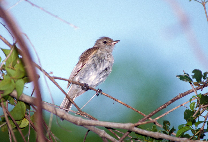 | The Caribbean Elaenia (Elaenia martinica) is a resident of tropical lowland forest of most of the Caribbean Islands and parts of the Yucatan Peninsula of Mexico. The single shot here was taken near Guanica, Puerto Rico, in July, 1998, with a Canon T-90 and EF 500mm F/4.5 lens on Fuji Sensia film. | ![]() |
