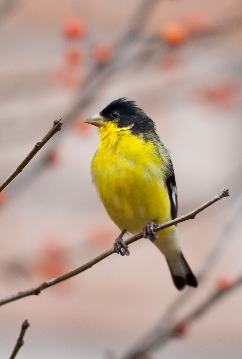 | The next 4 shots of Lesser Goldfinch were taken in Austin, Travis Co., Texas, in February, 2010, with a Canon EOS 1D Mark III and an EF 800mm F/5.6 L IS lens. | ![]() |
