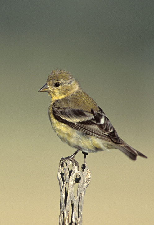 | The female Lesser Goldfinch here was also in the Davis Mountains of west Texas, but in June, 2005. This was a digital shot with a Canon EOS 1D Mark II and EF 600mm F/4 L IS lens and 2X extender. | ![]() |