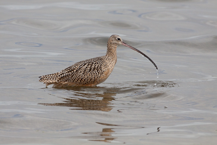 | The next 3 shots show a Long-billed Curlew foraging in shallow water at Corpus Christi, Nueces Co., Texas, in February, 2010. These shots were taken with a Canon EOS 50D and an EF 800mm F/5.6 L IS lens. | ![]() |