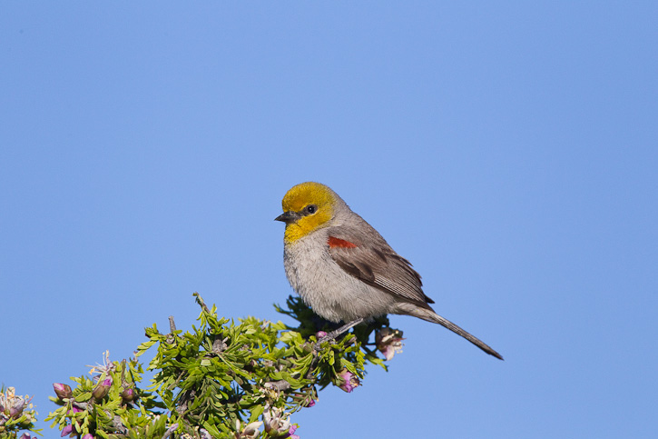 | The next 3 images show Verdins in Catalina, Pima Co., Arizona, in March, 2009. These images were taken with a Canon EOS 1D Mark III. The 1st two shots with an EF 800mm F/5.6 L IS land and the 3rd shot with an EF 500mm F/4 L IS lens. | ![]() |