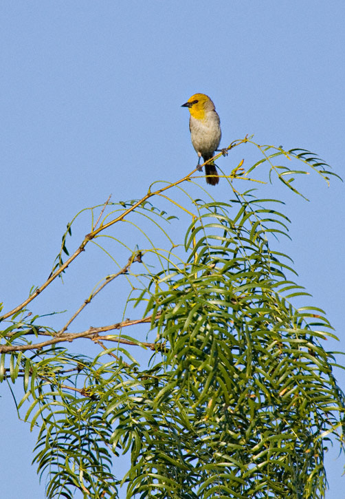 | This shot is a typical view of a Verdin perched in a mesquite. | ![]() |