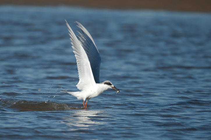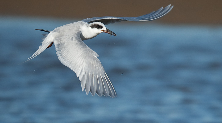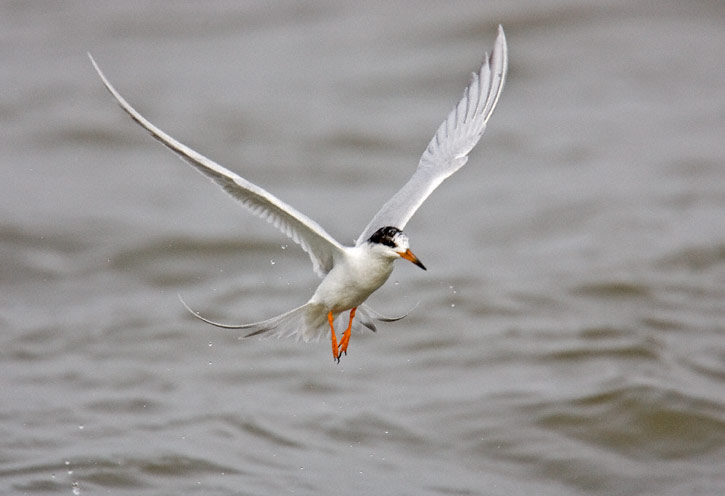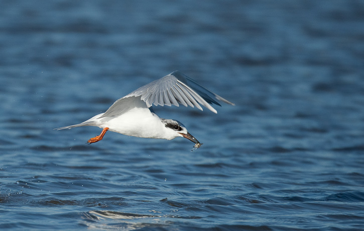 | Success! Small fish in bill, the tern takes after catching lunch. |