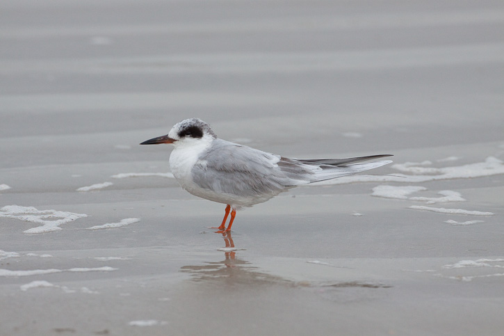| The Forster's Tern in basic plumage shown here was standing on the Gulf Beach, Port Aransas, Nueces Co., Texas, in February, 2010. This shot was taken with a Canon EOS 50D and an EF 800mm F/5.6 L IS lens. |