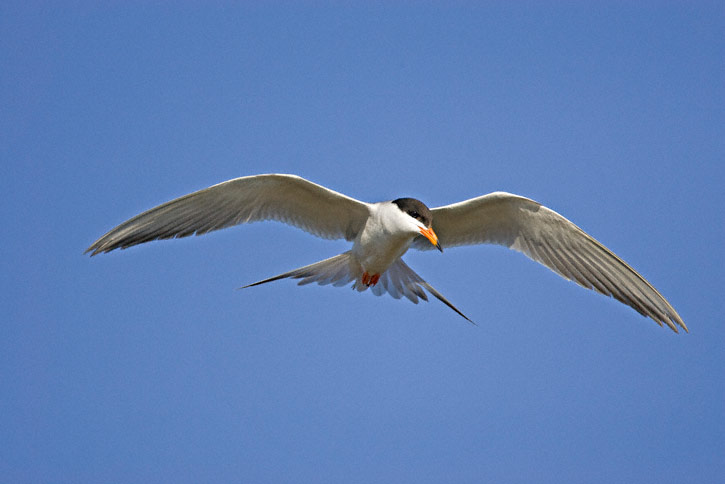 | The next two shots show a breeding plumaged Forster's Tern in flight at Benton Lake N.W.R., Cascade Co., Montana, in June, 2007. These shots were taken with a Canon EOS 1D Mark II and EF 500mm F/4 L IS lens and 1.4X extender. |