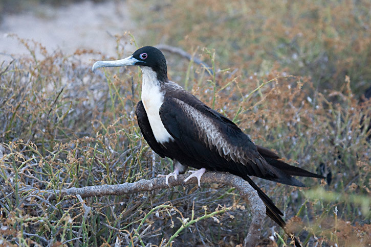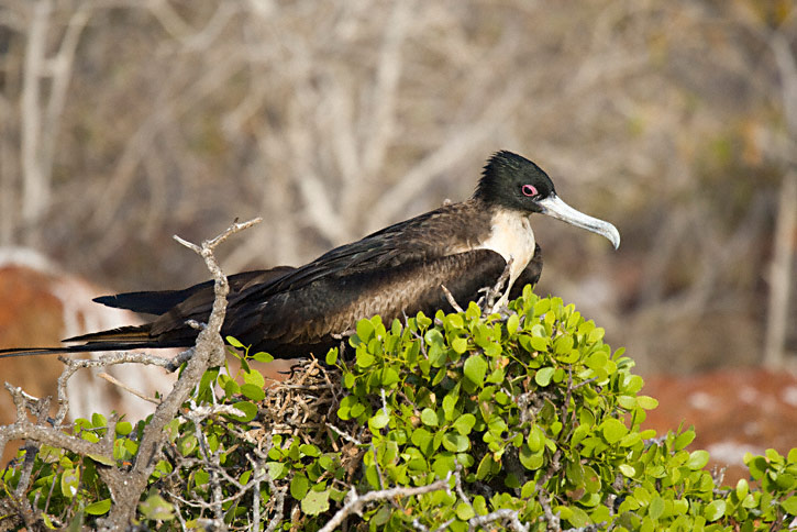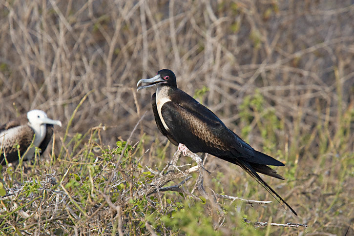 | The next three shots of Great Frigatebird were taken on Tower Island in the Galapagos, in August, 2010, with a Canon EOS 1D Mark IV and a Sigma 50-500mm lens. The bird in the first two shots is a female. |