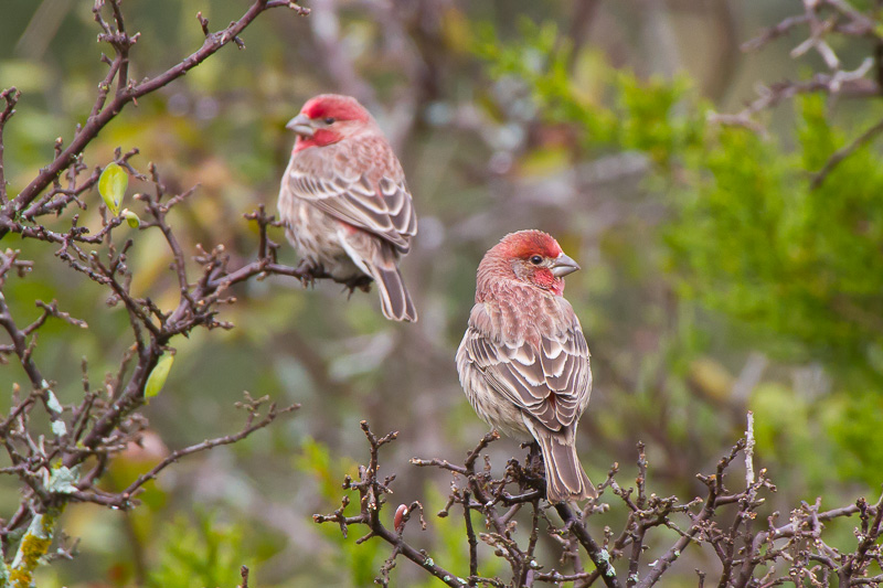 | The next 5 images of House Finches were taken in March, 2009, in Catalina, Pima Co., Arizona, with a Canon EOS 1D Mark III and EF 500mm F/4 L IS lens. Two of the images show a male feeding a female as part of courtship. | ![]() |