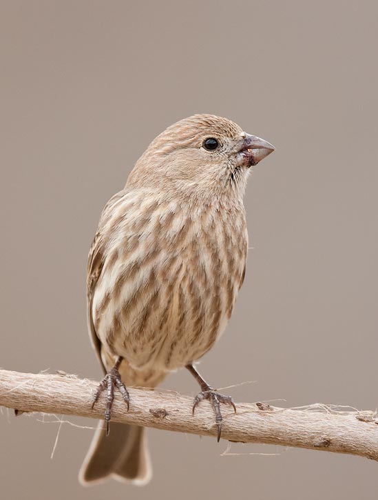 | The next 3 shots show images of female House Finches in Austin, Travis Co., Texas in December, 2008. These shots were taken with a Canon EOS 40D and an EF 800mm F/5.6 L IS lens. | ![]() |
