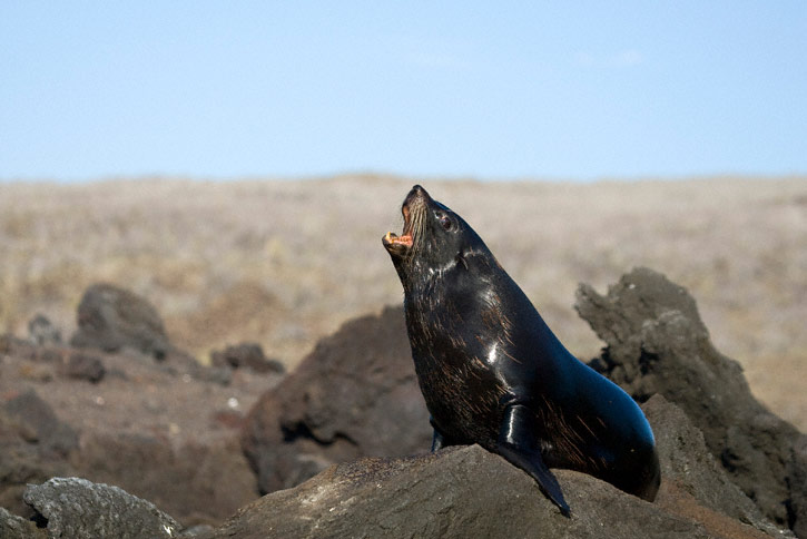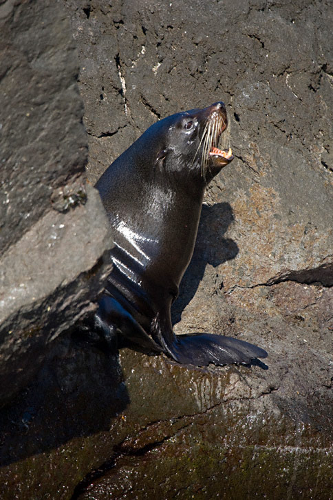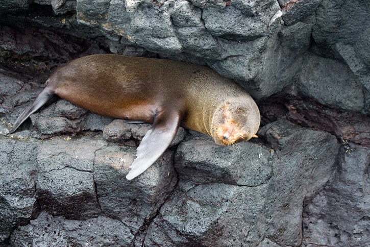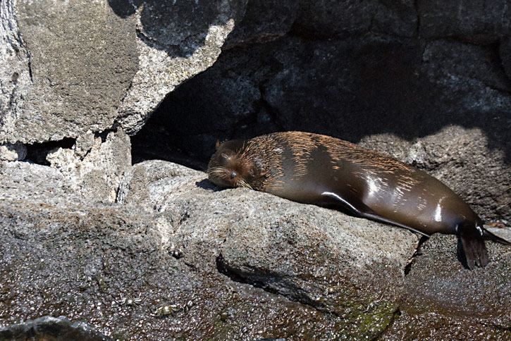 | The next 7 images were taken in the Galapagos Islands in July 2007, with a Canon EOS 1D Mark III and EF 100-400mm F/4.5-5.6 L IS lens. The animal in the next 3 shots was drying off in the sun. The dry fur is light brown while the fur which is still wet is dark. | ![]()  |