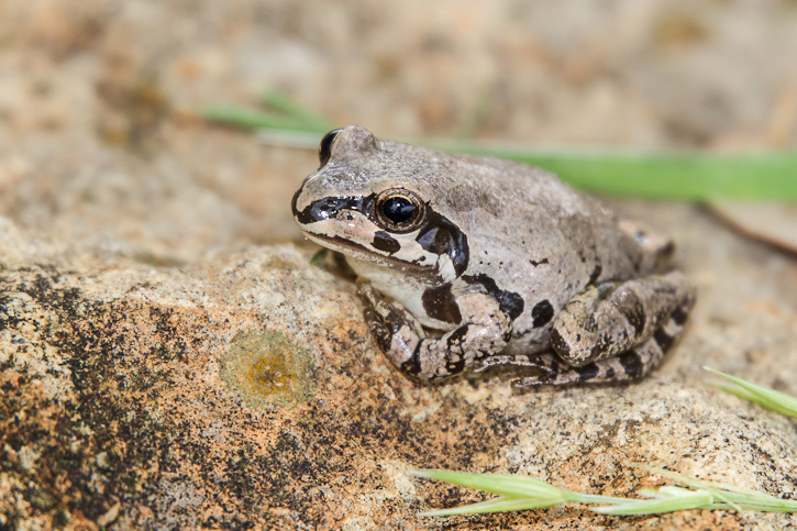 The Strecker's Chorus Frog (Pseudacris streckeri) is a species of nocturnal tree frog native to the south central United States, from southern Kansas, through Oklahoma and east to Arkansas, the northwestern tip of Louisiana and south throughouth much of Texas. The first seven images on this page show an individual which was found in a partially wooded yard after a rain, in Dripping Springs, Hays Co., Texas, in May, 2012.