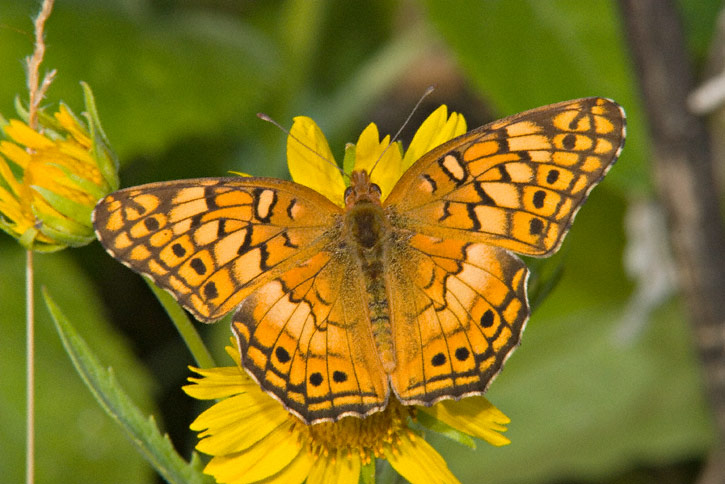 | The Variegated Fritillary (Euptoieta claudia) is a common butterfly across most of the United States and Mexico. The first shot here was taken along the Nueces River near Barksdale, in Real Co., Texas, in May, 2003, with a Canon EOS 10D and an EF 70-200mm F/2.8 L IS lens and 2X extender. |