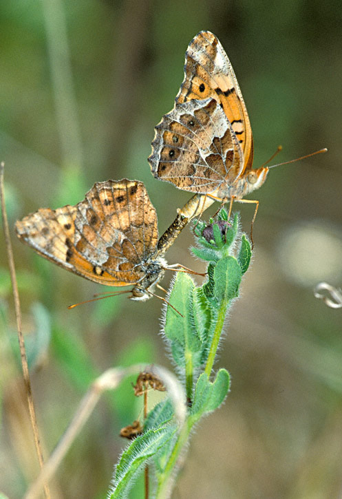 | The underwings of the Variegated Fritillary are quite different from the upper wings. This pair in copula was photographed in April, 2000, in Kenedy Co., Texas with a Canon EOS 3 and an EF 180mm F/3.5 Macro and Fuji Sensia 100 film. |