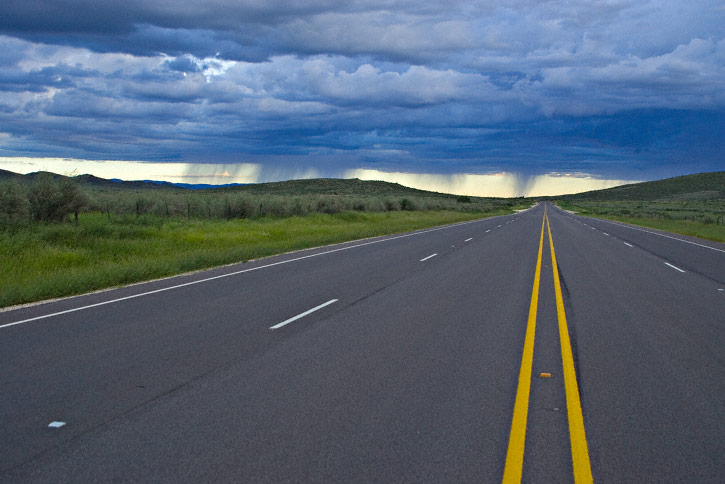 | West Texas Storms. The skies of west Texas may sometimes produce terrific scenes during stormy weather. The first two shots here were taken along Hwy. 17 between Fort Davis and Balmorhea in September, 2006, as thunderstorms marched across the desert toward me. These images were taken with a Canon EOS 1D Mark II and Sigma 12-24mm lens. | ![]() |