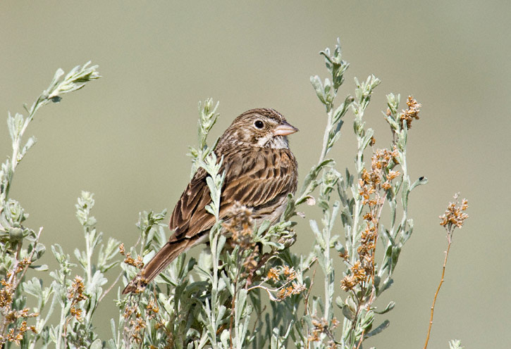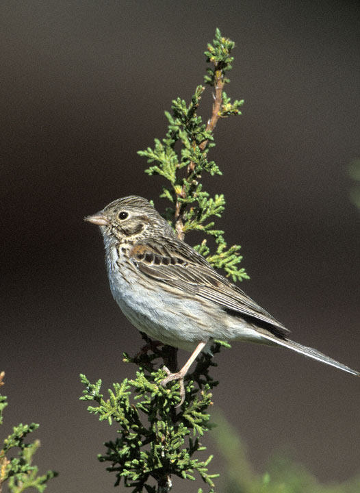 | The Vesper Sparrow shown here, as well as the 7 more shots at right that one, were all photographed in upper Crouse Canyon, Uintah Co., Utah, in June, 2007, with a Canon EOS 1D Mark III and EF 600mm F/4 L IS lens and a 1.4 or 2X extender, depending on the shot. | ![]() |