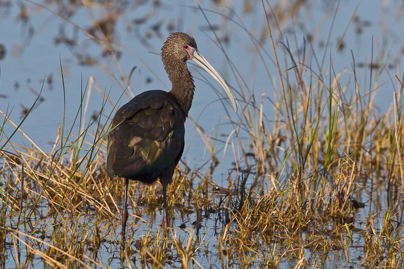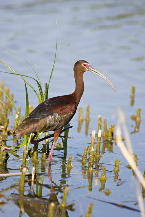 | The basic plumaged White-faced Ibis shown here was in Austin, Travis Co., Texas, in August, 2010. This shot was taken with a Canon EOS 1D Mark IV and a Sigma 50-500mm lens and Canon 580 flash. | ![]() |
