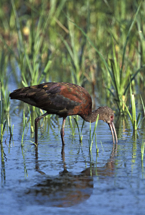 | The next three shots show a breeding-plumaged White-faced Ibis at Bear River N.W.R., Box Elder Co., Utah, in June, 2007. These shots were taken with a Canon EOS 1D Mark II and EF 600mm F/4 L IS lens. | ![]() |