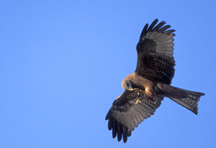 | The Yellow-billed Kite (Milvus aegyptius) is a common raptor of southern Africa. The images here were taken in October, 1998, at Shakawe, Okavango River, Botswana, Africa. These were shot with a Canon EOS 1N and EF 300 mm F/4 L IS lens and 1.4X extender on Fuji Sensia film. | ![]() |