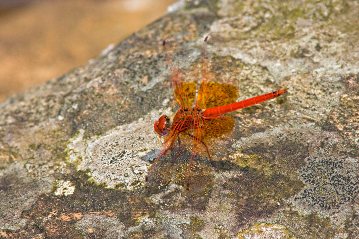 | The Kirby's Dropwing (Trithemis kirbyi) is widespread over much of Africa. It occurs well into the Middle East, parts of Asia and on many islands in the Indian Ocean. The first photo of a male was taken near Nylsvley, Limpopo Province, South Africa and the next shot was taken at a pond near Nelspruit, Mpumalanga Province, South Africa. Both images were taken in January, 2006, with a Canon EOS 1D Mark II and EF 300mm F/4 L IS lens and 2X extender with a 580 flash. | ![]() |