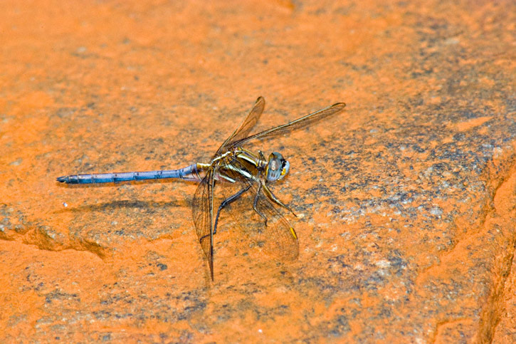 | The Two-striped Skimmer (Orthetrum caffrum) occurs across South Africa ranging north into central Africa as well. The shots here of a male were taken in the Blyde River Canyon, Mpumalanga Province, South Africa in January, 2006 with a Canon EOS 1D Mark II and EF 300mm F/4 L IS lens and 2X extender with a 580 flash. | ![]() |