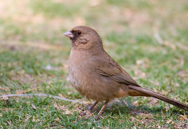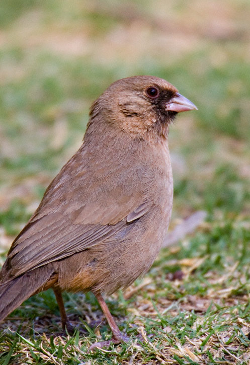 | The Abert's Towhee (Pipilo aberti) is a resident of desert thickets and riparian areas in parts of the southwestern United States and a few areas of Mexico in northern Sonora and Baja. It can be a common species in some parts of its range. The first two shots here were taken in Tucson, Pima Co., Arizona, in April, 2005. These are digital images taken with a Canon EOS 1D Mark II and EF 500mm F/4 L IS lens and 2X extender. | ![]() |