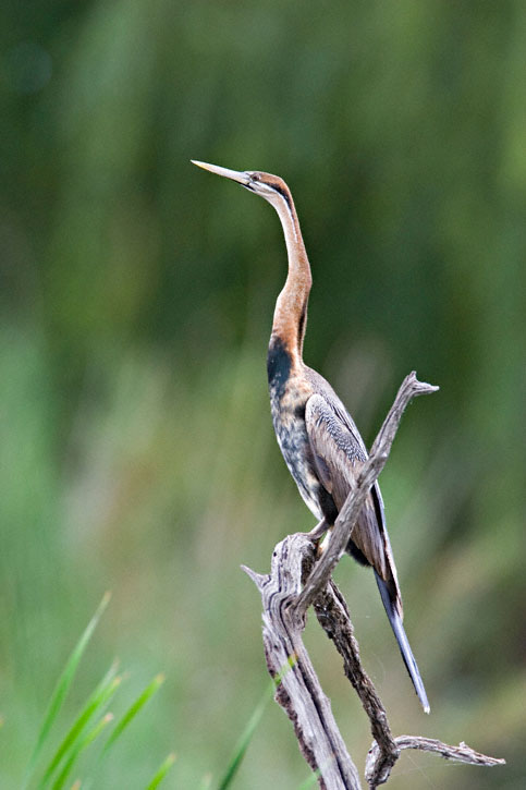 | African Darter (Anhinga rufa) is related to the Anhinga, more familiar to North American observers. This bird is an excellent swimmer and feeds upon fish. The photos shown here were taken with a Canon EOS 1D Mark II & EF 500mm F/4L IS lens and 2X extender at the Polokwane Bird Reserve near Pietersburg, Limpopo Province, South Africa, in January, 2006. | ![]() |