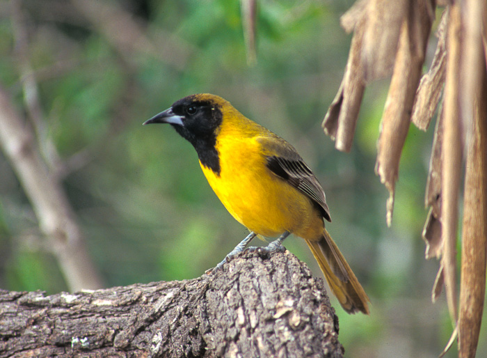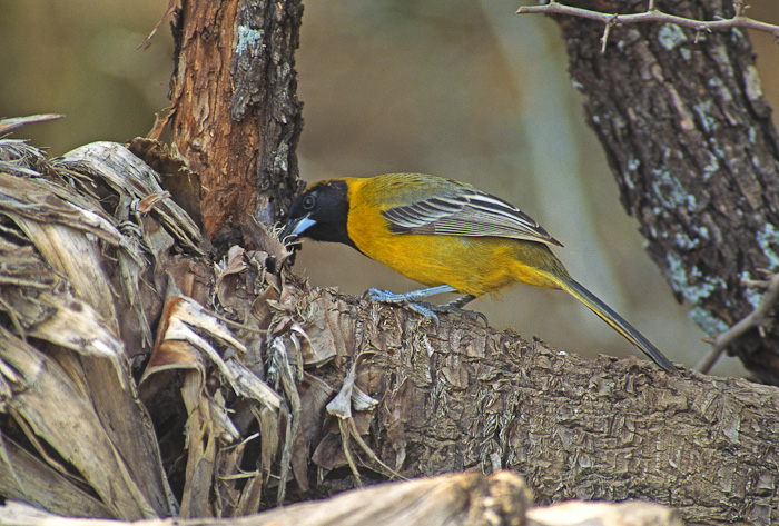 | The next three shots of Audubon's Oriole show an immature male in Starr Co., Texas, in February, 1998. These shotswere taken on Fuji Velvia film with a Canon T-90. |