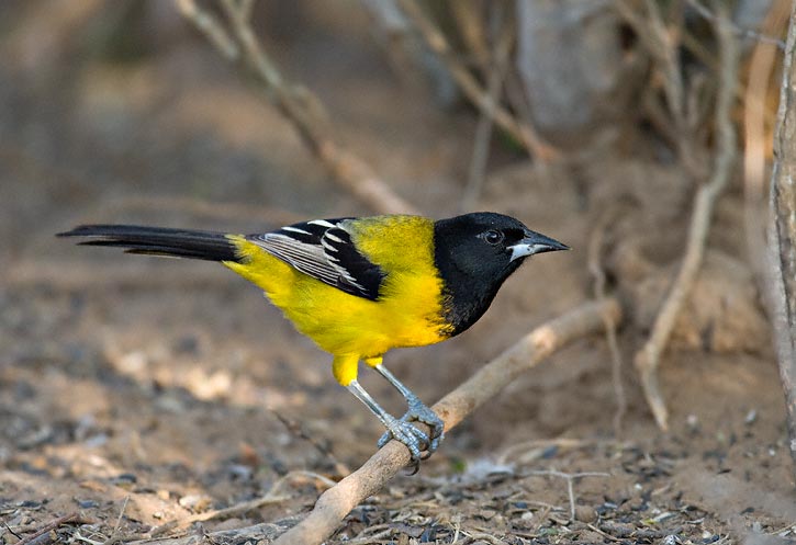 | The Audubon's Oriole shown here was near Rio Grande City, Starr Co., Texas, in December, 2007. This shot was taken with a Canon EOS 1D Mark III and EF 600mm F/4 L IS lens and 1.4X extender. |