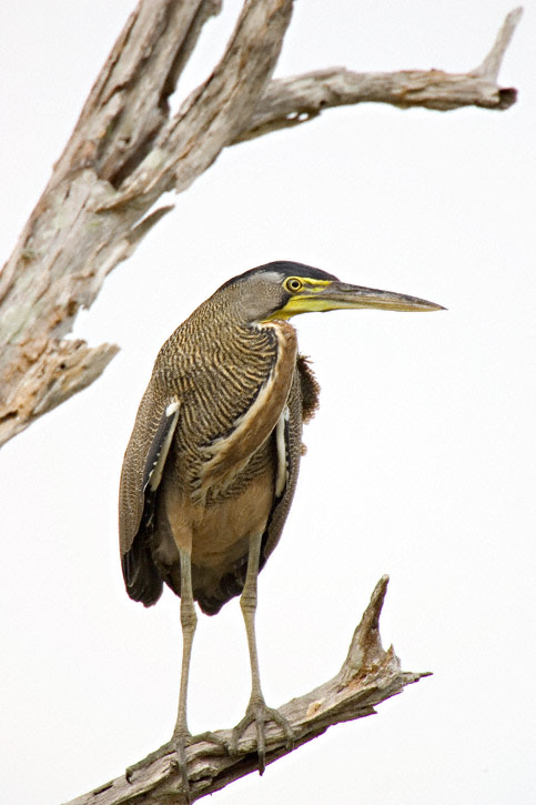 | The Bare-throated Tiger-Heron (Tigrisoma mexicanum) occurs from northeast Mexico southward all the way to Columbia. This bird gets its common name from the naked throat. The species favors fresh water marshes, swamps, and mangroves, especially those areas with woodland borders. The shots on this page were taken in December, 2004, in southern Tamaulipas, Mexico. These shots were digital photos with a Canon EOS 1D Mark II and 600 mm F/4 L IS lens. | ![]() |