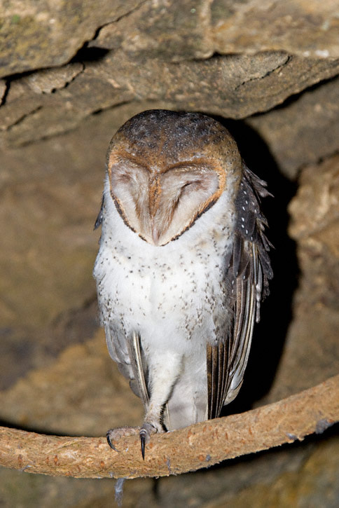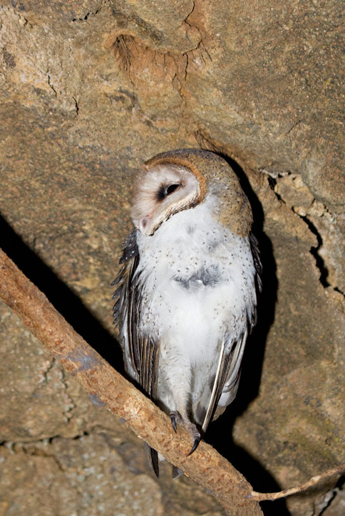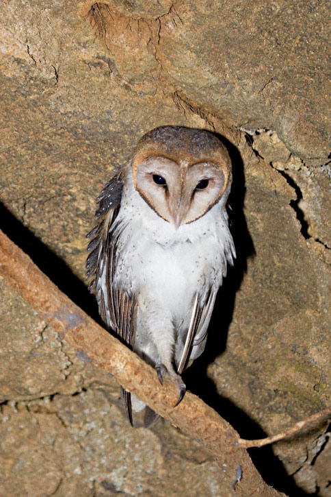 | The next three shots show a Barn Owl in the highlands of Santa Cruz Island in the Galapagos Islands of Ecuador in July, 2007. This bird was roosting on an overheat tree root inside a lava cave. These shots were taken with a Canon EOS 1D Mark III and EF 100-400mm F/4.5-5.6 L IS lens with flash. |