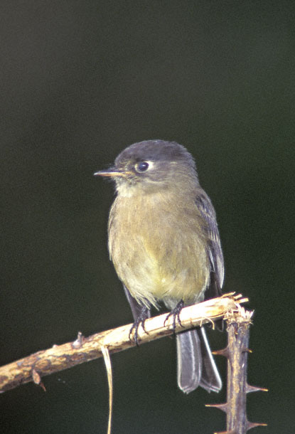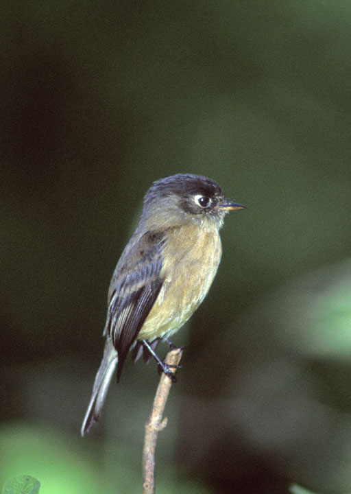 The Black-capped Flycatcher (Empidonax atriceps) is similar in appearance to the other members of the genus Empidonax more familiar to U.S. observers. This species ranges from Costa Rica to Panama and can often be found in the upper canopy of mountain forests. This individual was photographed in October, 1995, at Chacons, 15 km SSE of Tres de Junio, Provincia de San Jose, Costa Rica. A Canon T-90 and FD 400mm F4.5 lens from a BushHawk shoulder mount with a Fresnel flash and Fuji Sensia 100 film was used. | ![]() |