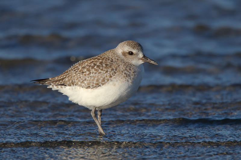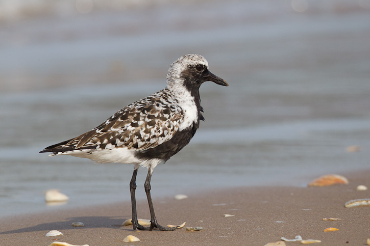 | The Black-bellied Plover in basic (winter) plumage in this shot was on the beach at South Padre Island, Cameron Co., Texas, in December, 2010. This shot was taken with a Canon EOS 1D Mark IV and an EF 800mm F/5.6 L IS lens. |