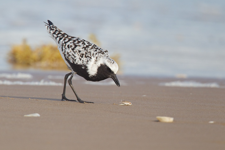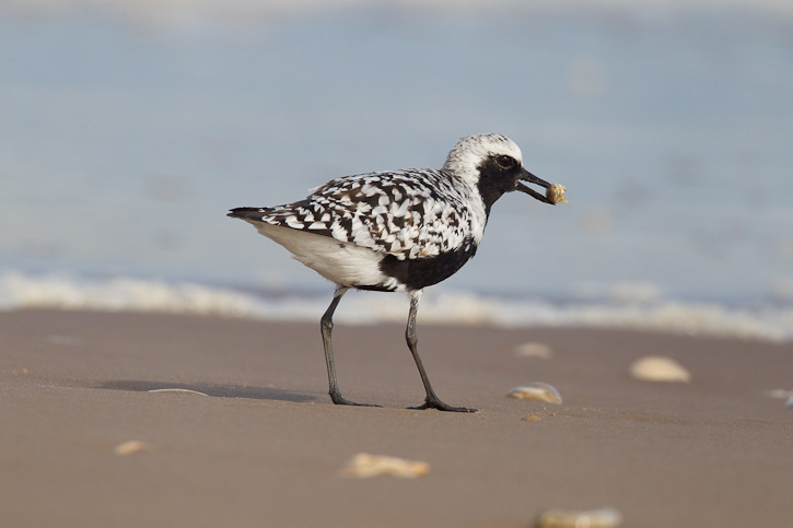 | The next 13 images of mostly breeding plumaged Black-bellied Plovers were taken on South Padre Island, Cameron Co., Texas, in May, 2010, with a Canon EOS 1D Mark IV and an EF 800mm F/5.6 L IS lens. |