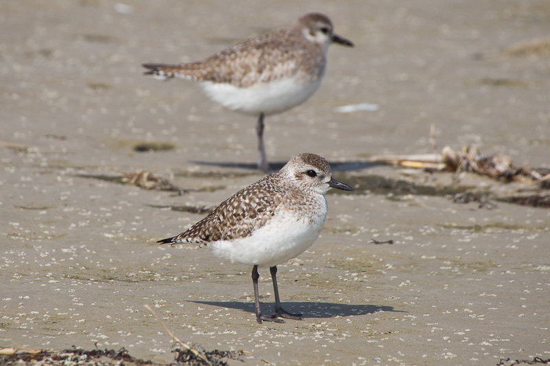 | The basic plumaged Black-bellied Plovers on the right were at Port Aransas, Nueces Co., Texas, in February, 2013. |