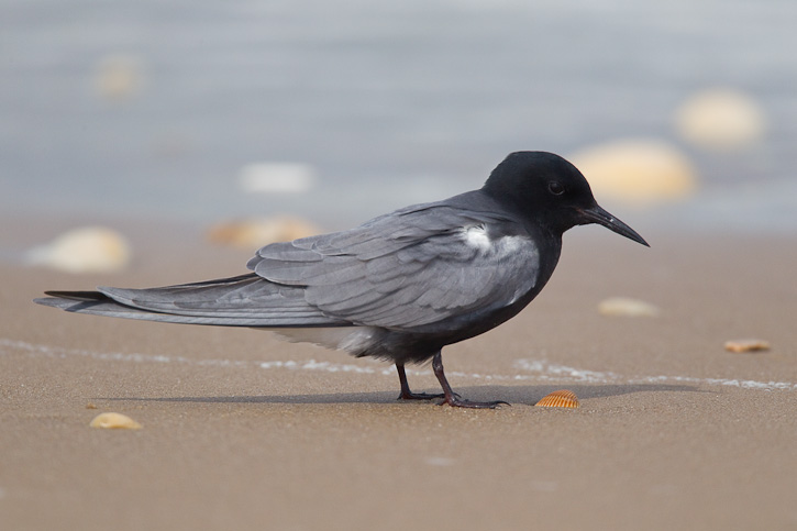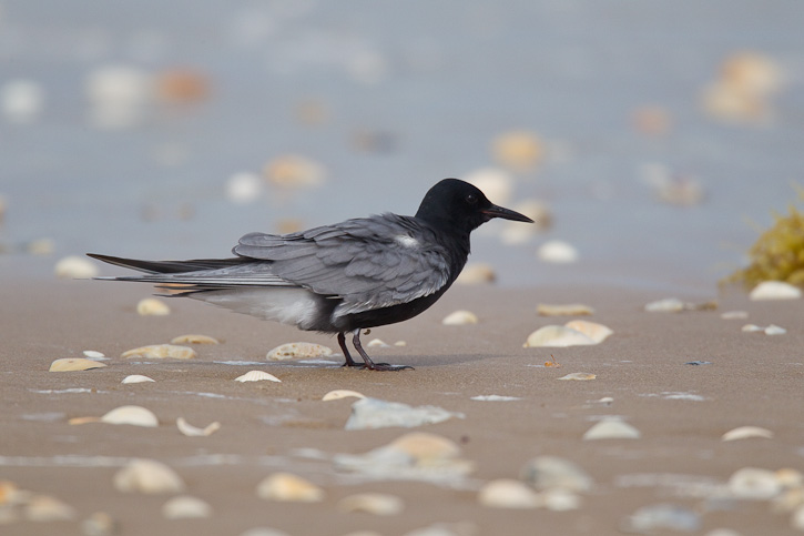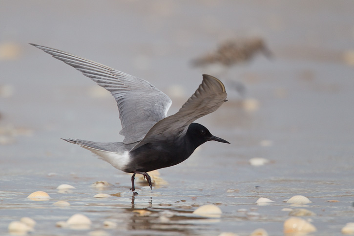 | The Black Tern (Chlidonias niger) is a mostly black tern which breeds in on lakes, marshes, and prairie potholes of parts of the northern United States and Canada. It winters on the coasts of Central and South America. The first 6 shots on this page were taken on South Padre Island, Cameron Co., Texas, in May, 2010. These are birds still on their way north to breed. These shots were taken with a Canon EOS 1D Mark IV and EF 800mm F/5.6 L IS lens. |