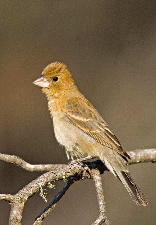 | This shot shows a female Blue Grosbeak in the Davis Mountains of west Texas in Jeff Davis Co., during June, 2005. This shot was taken with a Canon EOS 1D Mark II and EF 600mm F/4 L IS lens and 2X extender. |