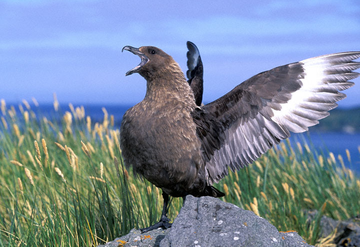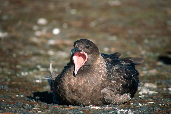 | The yawning Brown Skua shown here was at Whalers Bay, Deception Island, Antarctica, in January, 1998. This image was taken with the same gear and film as the above shot. |