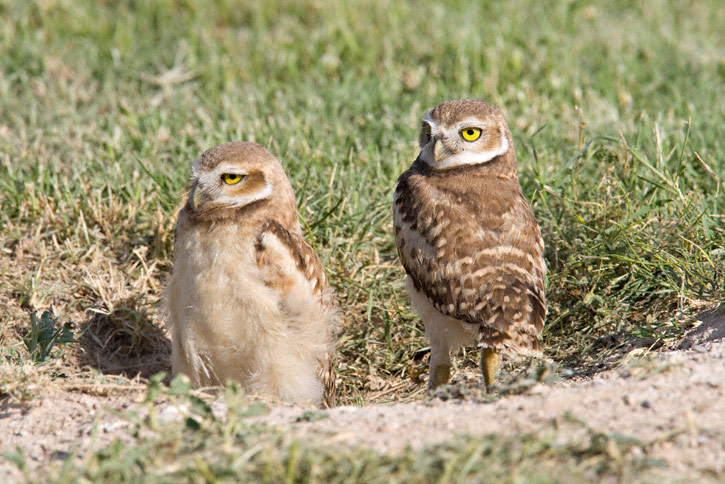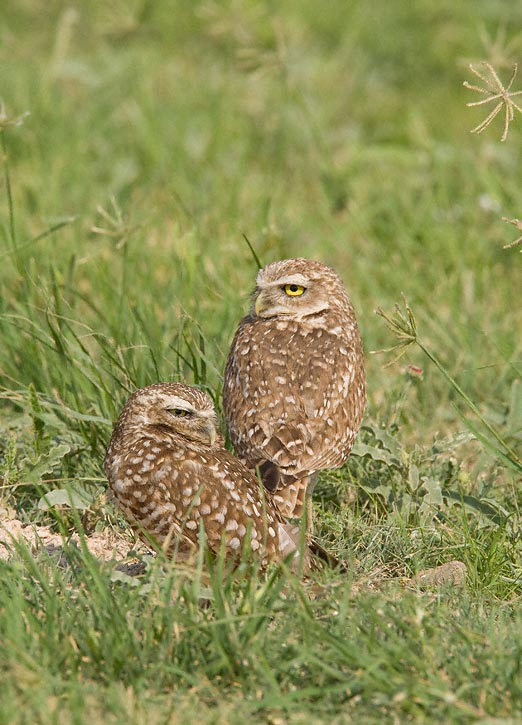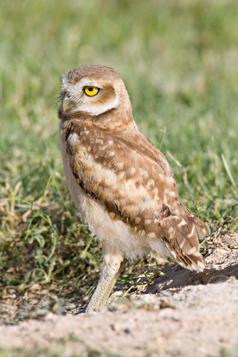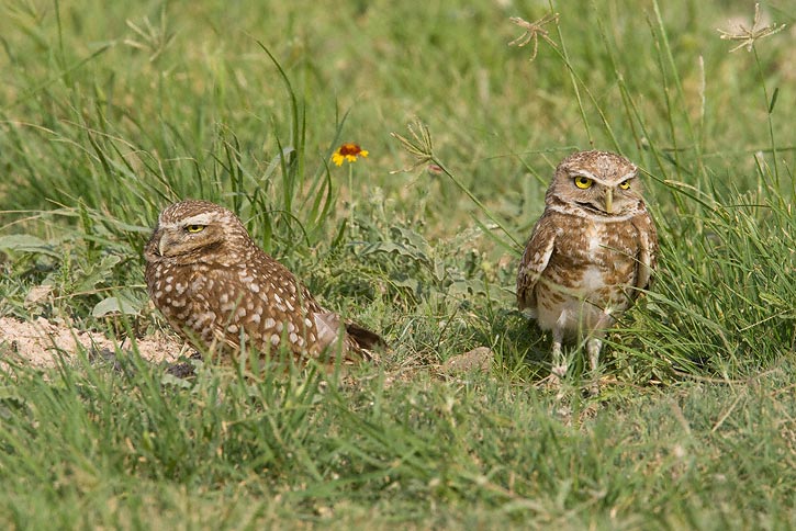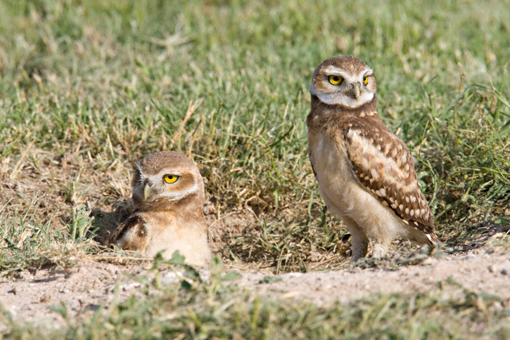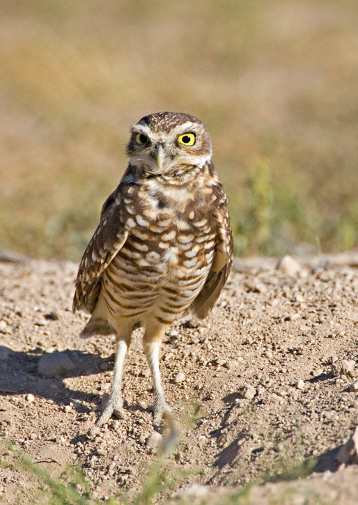 The next 6 images of Burrowing Owl show adults near a nest burrow. These images were taken at Fort Stockton, Pecos Co., Texas, in May, 2008. I suspect this pair had young in the burrow, but I was there a little early for the young to be out investigating their new world. |