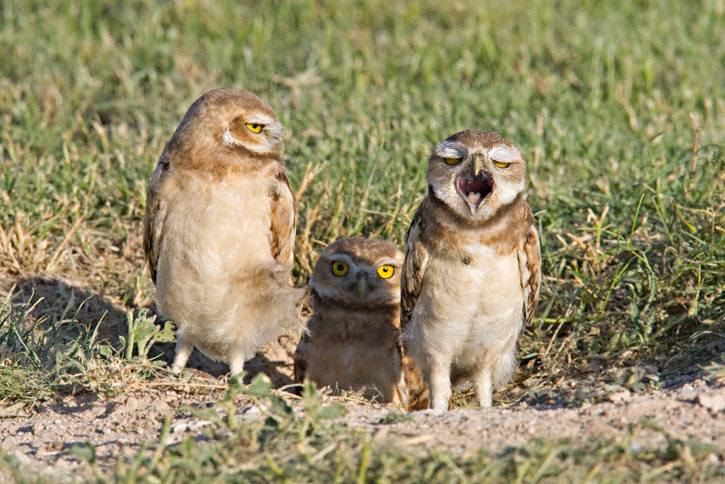 Another youngster emerges from the burrow and gives a big yawn. Below are several more shots of the youngsters as they vocalize and keep a watch out for the adults bringing food. |