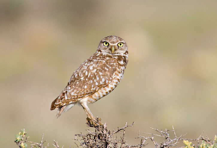 The adult Burrowing Owl shown here was perched on some scrub at the Pawnee National Grasslands, Weld Co., Colorado, in June, 2007. This shot was taken with the same gear described previously. |