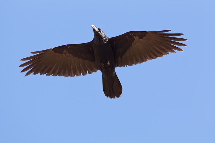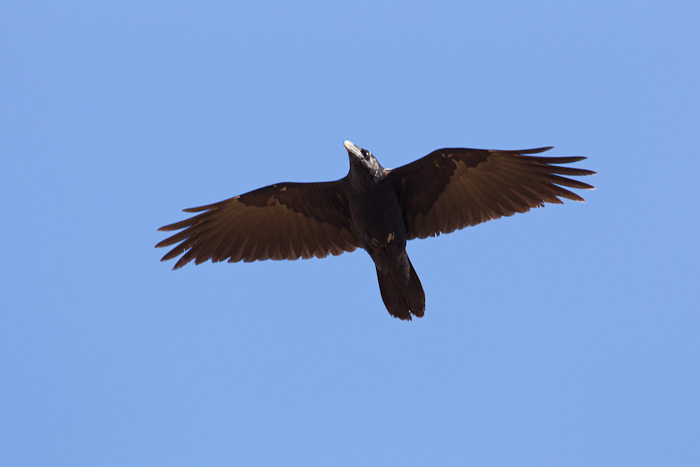 The next two shots on the right show a Chihuahuan Raven passing overhead near Texline, Dallam Co., Texas, in January, 2011. The same photo gear as the previous shots was used. |