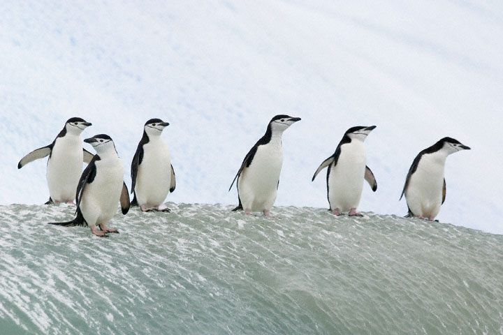 | The Chinstraps shown here were walking along an iceberg at Elephant Island, Antarctica, in January, 2003. This was a digital shot with a Canon EOS 10D and EF 70-200mm F/2/8 L IS lens. |
