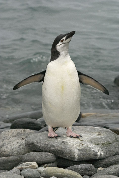 | Well, when you have an itch you have to scratch! This Chinstrap with an itch on the top of its head was at Bailey Head, Antarctica, in January, 2002. The image was shot with a Canon EOS 1V and an EF 70-200mm F/2.8 L IS lens on Fuji Velvia. |