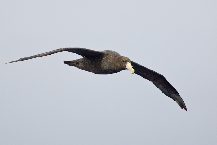 | The Antarctic Giant-Petrel here and the image following were photographed in February, 2005, off the Antarctic Peninsula with a Canon EOS 1D Mark II and EF 70-200 F/2.8 L IS lens and 2X extender. |