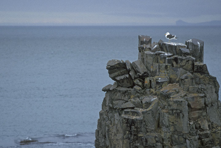 | Another shot from Hannah Point in January, 1999. This image offers a good perspective of a typical view of this gull in Antarctica. |