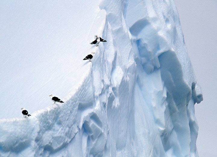 | The Kelp Gulls here were resting on an iceberg in the Gerlache Straight in Antarctica, in January, 2000. |
