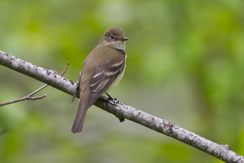 | The next three images show an Alder Flycatcher on its nesting grounds along Campbell Creek, Anchorage, Alaska, in June, 2012. These shots were taken with a Canon EOS 1D Mark IV and an EF 500mm F/4 L IS lens and 1.4X extender. Alder Flycatcher Empidonax alnorum singing male on territory Campbell Creek, Anchorage, Alaska 7 June 2012 61.16511 149.76768 The Alder Flycatcher (Empidonax alnorum) breeds across parts of the northeastern United States and much of Canada and winters outside the United States in western South America. It does not migrate across the Gulf of Mexico like many other neotropical migrants, but rather, is considered a Circum-Gulf migrant. All members of the genus Empidonax should be identified with care since they are all very similar in appearance. |