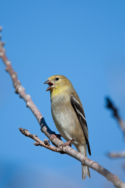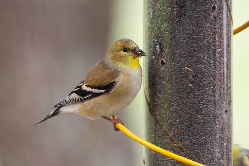 | The next 4 shots of winter plumaged American Goldfinches were taken in Austin, Travis Co., Texas, in December, 2008, with a Canon EOS 40D and an EF 800mm F/5.6 L IS lens. | ![]() |