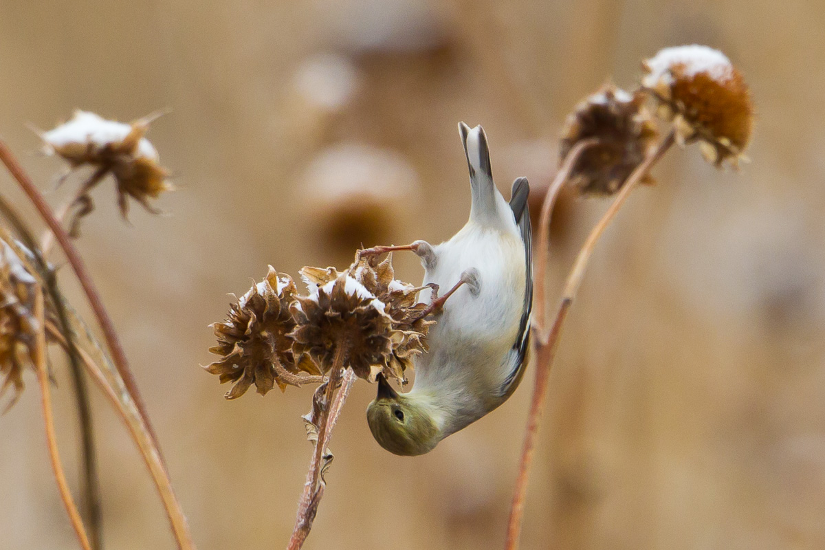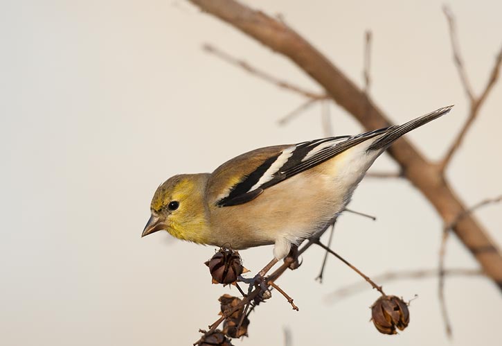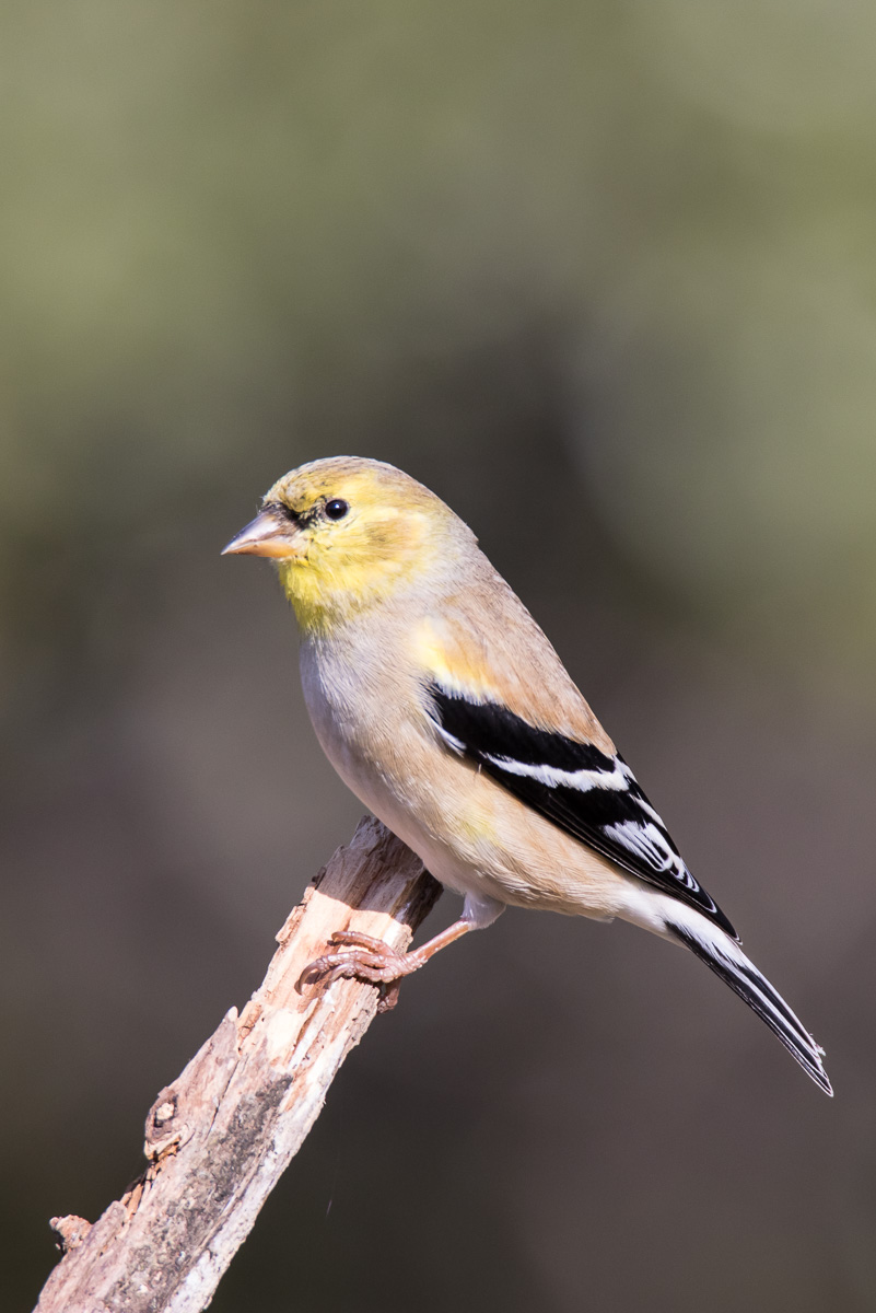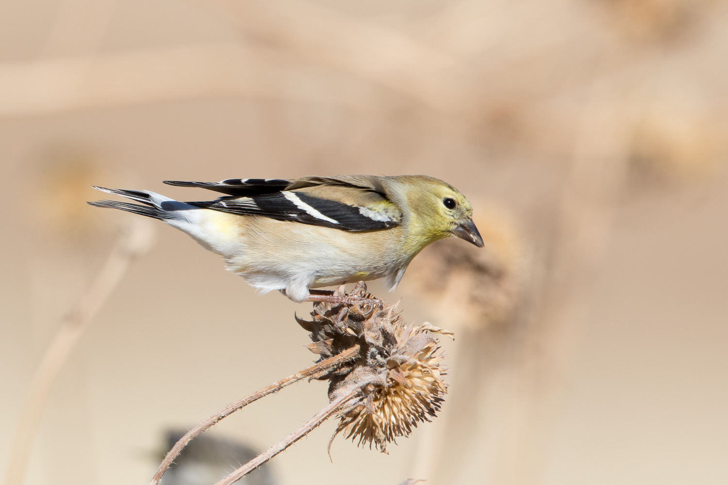 | The American Goldfinch shown here, in winter plumage, was in Austin, Travis Co., Texas, in January, 2010, with a Canon EOS 1D Mark III and an EF 800mm F/5.6 L IS lens. | ![]() |