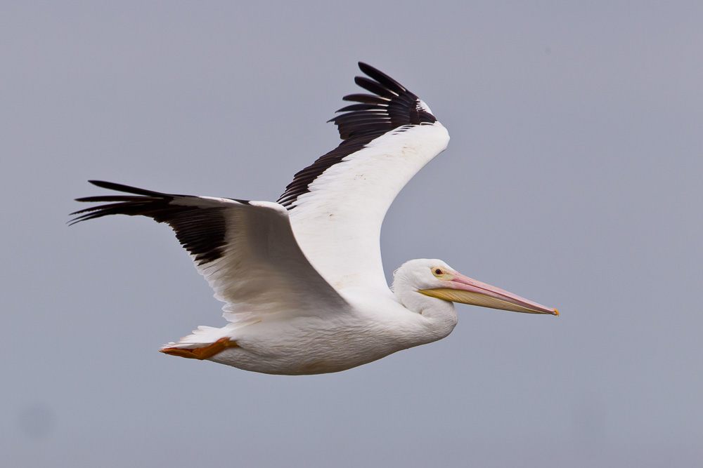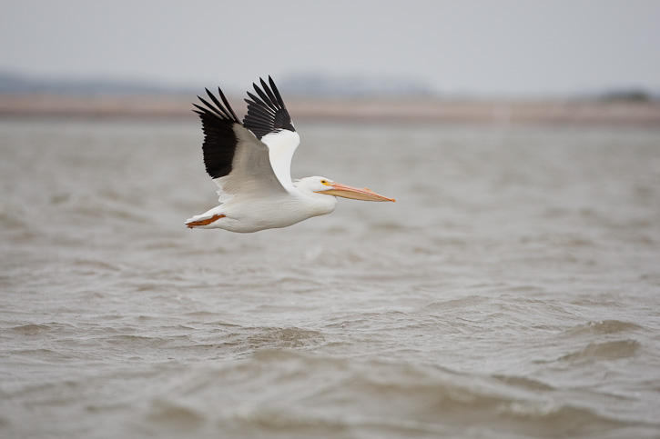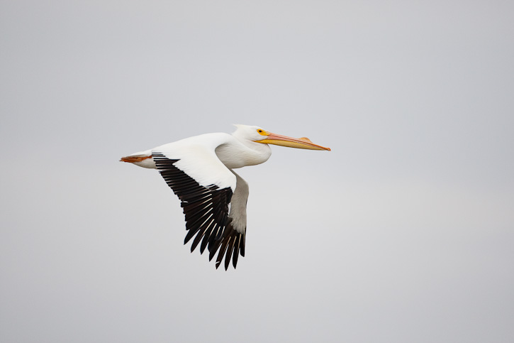| American White Pelican Pelecanus erythrorhynchos in flight near Sanibel Island, Lee Co., Florida 21 January 2013 |