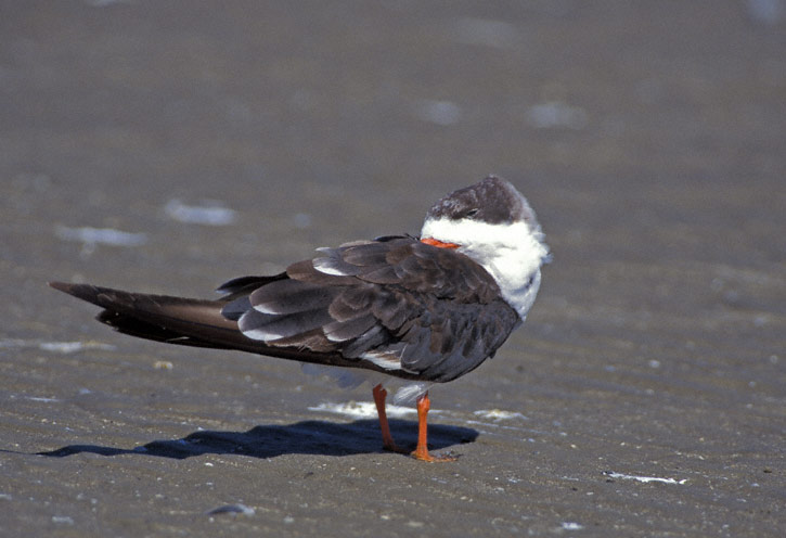 | The sleeping Black Skimmer at right was photographed in Galveston, Galveston Co., Texas, in October, 1998. | ![]() |